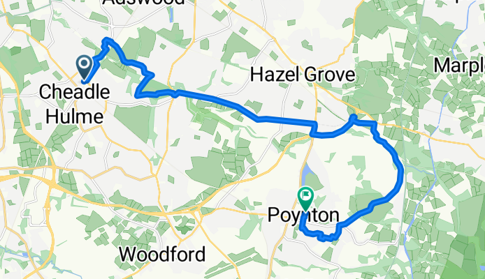 Erstelle deine eigene Route auf der Grundlage unserer Vorlage oder lass dich inspirieren, wie unsere Nutzer am liebsten von Cheadle Hulme nach Poynton radeln.