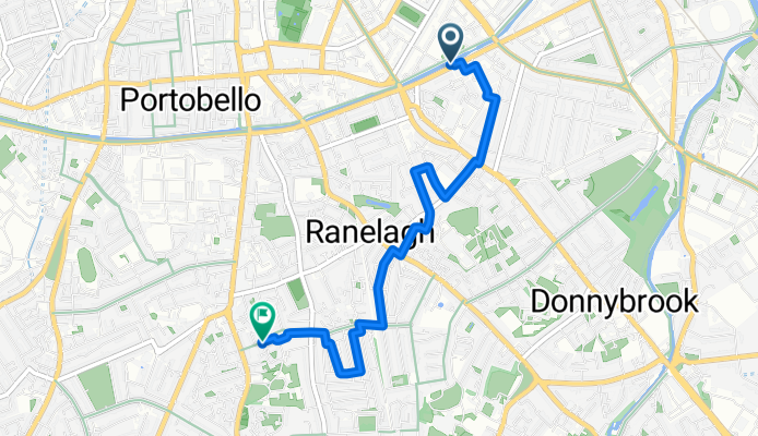 Kurz, stadtnah und entspannt: Vom Zentrum Dublins rollst du südwärts nach Rathmines. Die Route ist nur ca. 3,3 km lang, zu über 90% befestigt und verläuft überwiegend auf ruhigen Nebenstraßen (rund zwei Drittel), mit nur einem kurzen, etwas lebhafteren Abschnitt. Die Steigung ist minimal (etwa 16 m insgesamt) – gut machbar für Alltagsradler.
