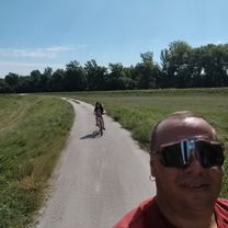 Eine Fahrradroute, die in Veľký Meder, Tyrnauer Landschaftsverband, Slowakei beginnt.