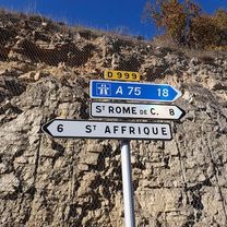 Das war eine großartige Strecke auf verkehrsarmen Straßen, abgesehen von der D999 am Ende, die eine Hauptstraße war, durchgehend bergab und mit relativ wenig Verkehr. Irgendwie haben wir einen auf der Karte angezeigten Radweg für die letzten zehn Kilometer nach St-Affrique verpasst. Wenn jemand diese Route fährt, sollte er in der Nähe der Boges road danach Ausschau halten.