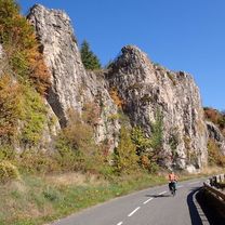 Eine Fahrradroute, die in Lodève, Occitanie, Frankreich beginnt.