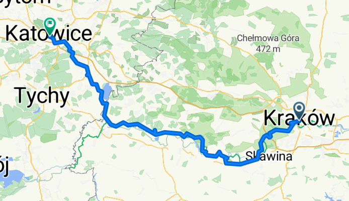 Spin west from Krak贸w and aim for Katowice on a long but friendly intercity ride. It鈥檚 about 118 km with roughly 490 m of climbing鈥攎ostly gentle rollers across the Silesian Upland. The route leans bike-friendly: around 42% cycleways and plenty of quiet roads, with predominantly paved surfaces (over 80% asphalt). Expect a few short gravel or path sections, so wider tires are a plus but not essential.