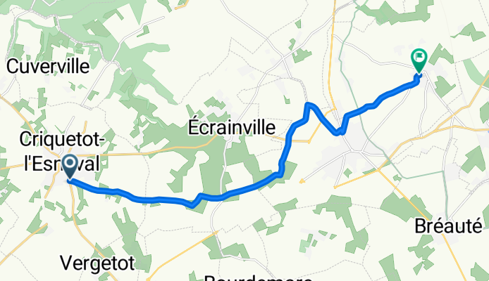A cycling route starting in Gonneville-la-Mallet, Normandy, France.