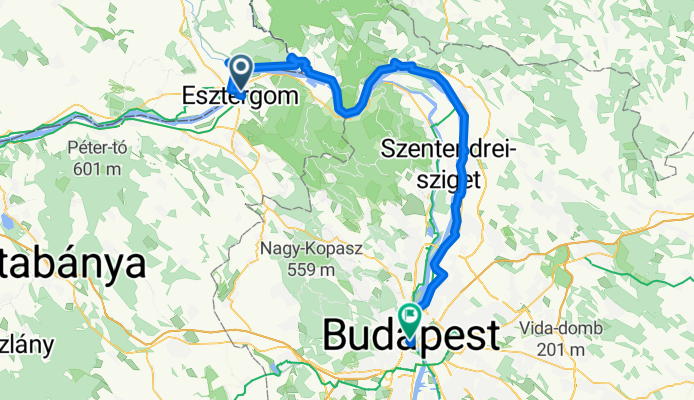 Esztergom - Dorog - Tokod - Annavölgy - Sárisáp - Úny - Pilis - Buda - Chain Bridge - Matild