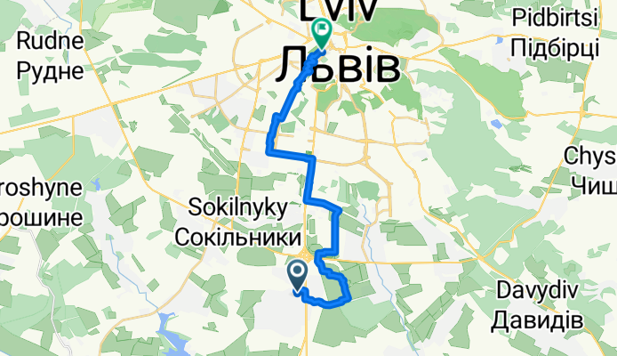 - проспект Червоної Калини 60, Львів to вулиця Гніздовського 68-А, Львів